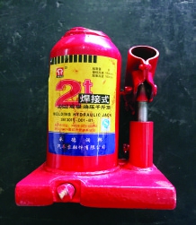 走訪過程中記者看到,千斤頂旁總會擺著一種紅色支架,“這是安全支架,又叫‘安全凳’,可以上下伸縮,配合千斤頂使用的,價格在百元左右。”銷售人員介紹。