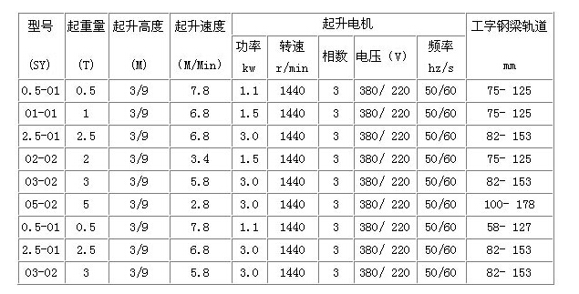 本產(chǎn)品SY型環(huán)鏈電動(dòng)葫蘆起升高度?起升重量?請(qǐng)點(diǎn)擊>>技術(shù)參數(shù)