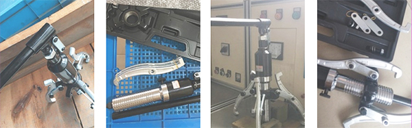 A:液壓拉馬是以油壓起動桿直接前進移動,故推動桿本身不做轉動。鉤爪座可隨螺 紋直接做前逬后退之調距,操作時只要把手前后小幅度擺動,油壓起動桿前移,鉤 爪相對應后退,所被拉物體拉出。新型液壓拉馬操作方便、省力。三爪式與二爪式 可根據現場工作需要拆換。可以自由旋轉按拉馬距離活塞中心點,很快可碰到被拉 工件中心點。可任意選配泵浦。