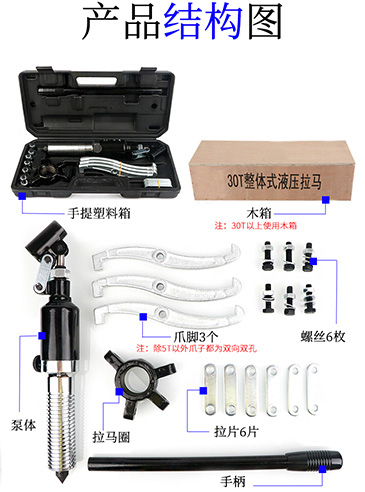 整體成型加粗泵體,不漏油,不斷裂,升級回油開關,快速回油,省心省力。抓的勞不勞,全靠它們→六角螺紋拉馬圈,螺紋越深爪得越緊,加粗加長,合金鋼爪,合金材質,抓鉤抓的勞。真正省力的拔軸承,手柄插入泵體頂部,上下搖動,省時省力。5cm加長推送桿,幫您解決壓一次伸一點的問題。調節自由,適用范圍廣,強力頂針,調節自由,輕松拆卸。操換靈活,不受場地限制。提著去哪都行,便攜手提塑料箱。
