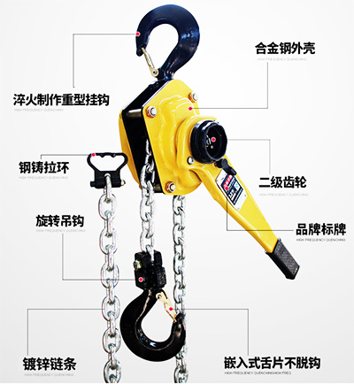 構(gòu)造優(yōu)秀,應(yīng)用可以信賴,堅固耐用。整個設(shè)備高效率,使用方便、舒服。重量輕,重量輕,攜帶方便。所有為結(jié)構(gòu)鋼。特等的鋁合金傳動鏈條。所有為傳動齒輪旋轉(zhuǎn)。傳動齒輪和軸的旋轉(zhuǎn)處常有滾動軸承或軸套。商品表層歷經(jīng)靜電噴塑解決。技術(shù)專業(yè)的鋁合金鉤可以滿足商品的超重。商品能考慮額定值荷載的150%的凈重。